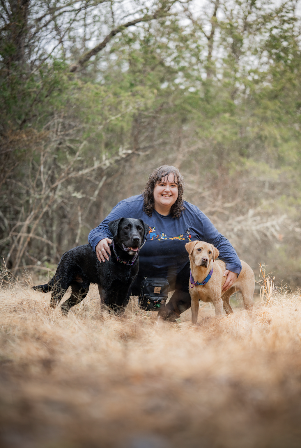Claire had her spark for dog training ignited while completing a mentorship under a local service dog trainer for an ADI accredited organization. From there, she learned how a service dog would benefit her life with her own disabilities. In 2020, she received her first service dog prospect and after a year made the difficult decision to wash him for an inappropriate temperament for service work. Since then, she has fully trained her current service dog, Pluto, added a second dog, Winnie (service dog in training), into her family, and pursued further education within the field of dog training. As of 2025, Claire has graduated multiple teams from her program into their titles of fully trained service dogs. She currently attends training seminars geared towards service dog training, is working towards a service dog specific certification, and has experience with a variety of breeds and dogs for service work.